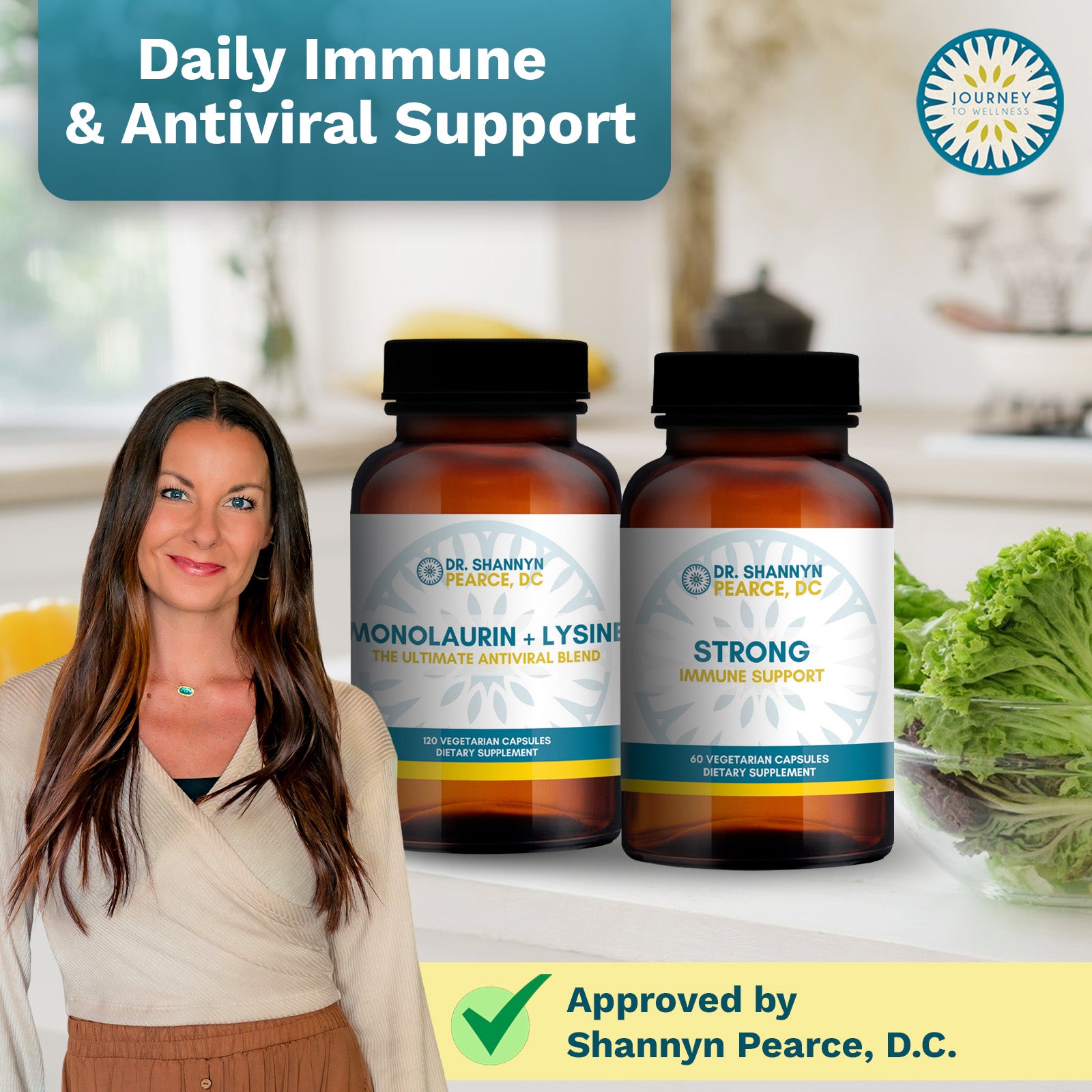 Comprehensive daily support for Epstein–Barr and other chronic viruses. Combines Monolaurin + Lysine to disrupt and deactivate viruses, with Strong: Immune Support to keep immune defenses strong, balanced, and resilient.