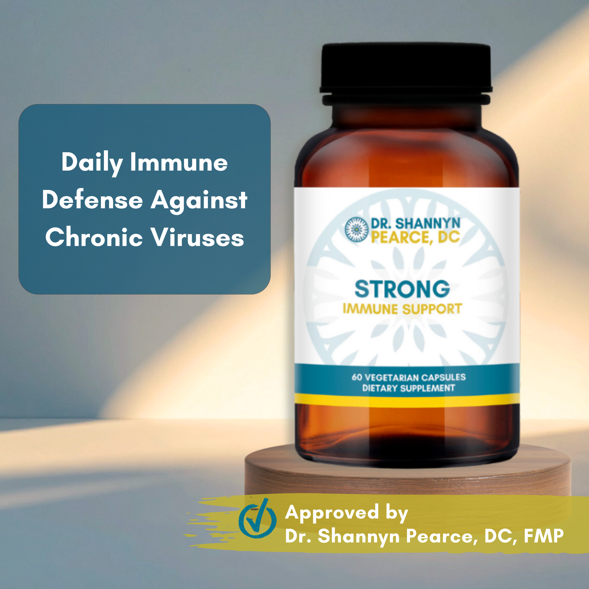 Strong Immune Support is formulated to help maintain a resilient, balanced immune system, especially when managing chronic viral infections such as Epstein-Barr. When the immune system is under constant strain, it can become overworked, increasing the risk of inflammation, flare-ups, autoimmune activity, and other complications. Strong delivers daily support without causing immune burnout.